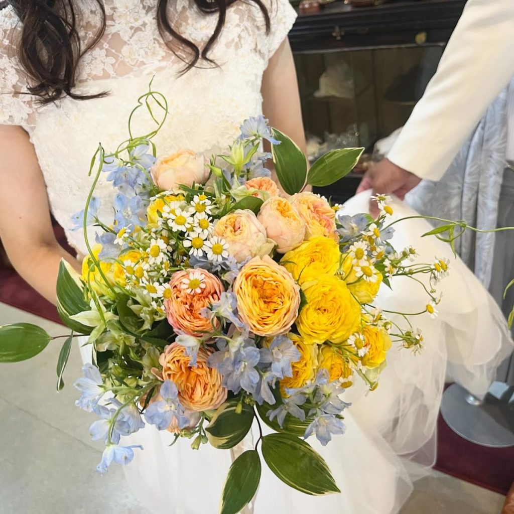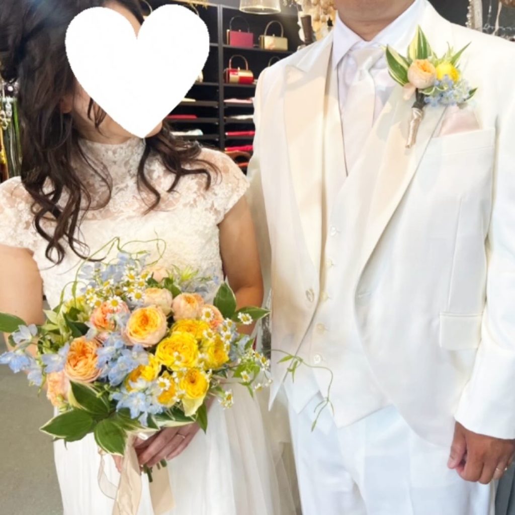 ウェディングブーケ制作 未分類 X Facebook はてブ Pocket LINE コピー 2024.07.16 2024.7.7 Happy Weedingウェディングブーケ、ブートニアの製作依頼がありました。 夏らしい爽やかなブーケをイメージしました